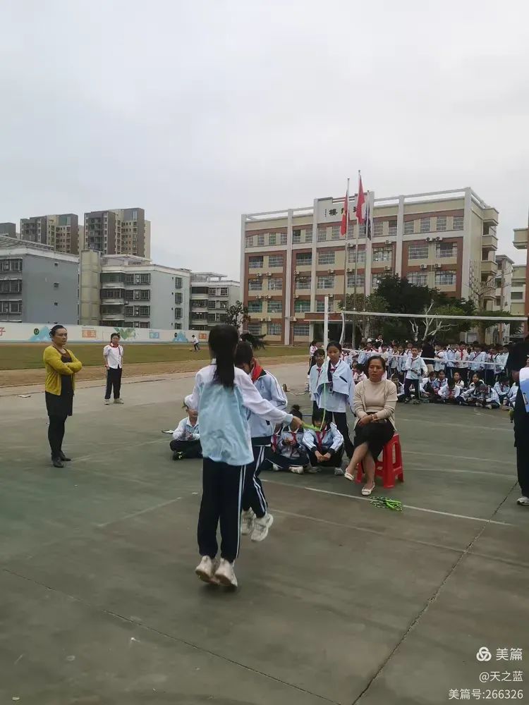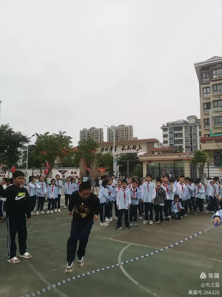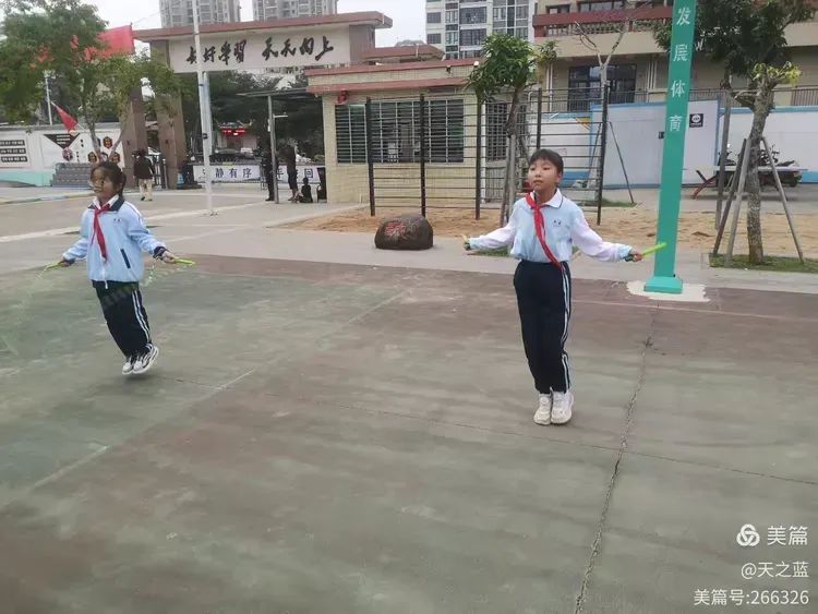 加油吧!树芳学子,用你们矫健的身姿挥洒在长长的跳绳上。
