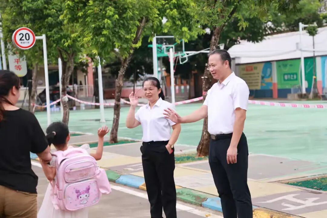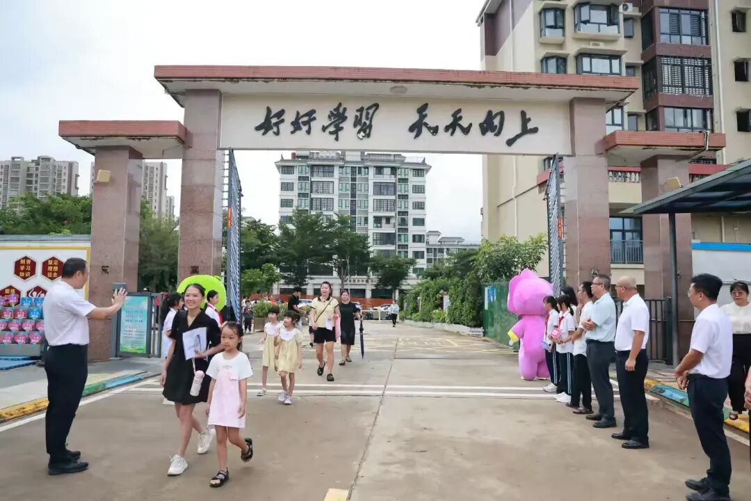 迎接环节 “有心意”:活动当天上午 8 时,王校带领全体中层以上领导身着正装,早早守候在校门口,微笑着向每一位入校的小朋友招手问好;欧丽媛主任提前安排两名学生穿上学校吉祥物服装,可爱的形象瞬间消除新生的陌生感,让孩子们在轻松愉悦的氛围中走进校园。