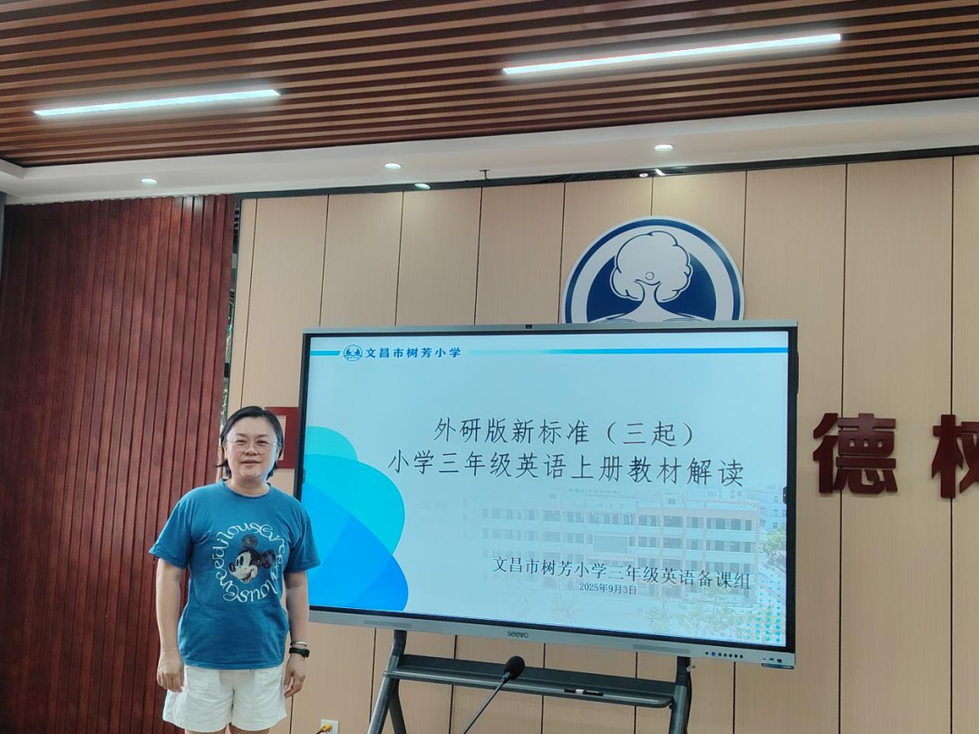 为进一步提升三年级英语教师对教材的深度解读能力,更好地掌握教材、驾驭教材、挖掘教材、整合教材,切实提高课堂教学效能,2025年9月3日,文昌市树芳小学三年级英语备课组开展了外研版(三年级起点)三年级上册教材专题研读活动。