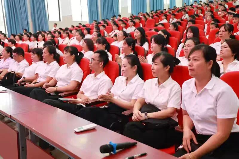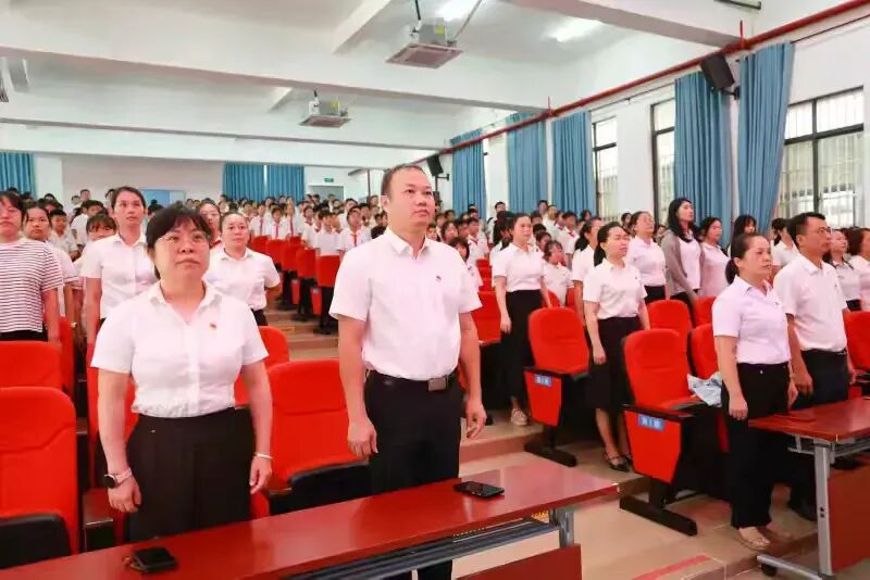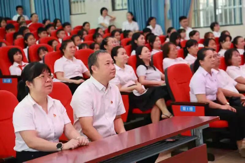 教师们以最庄重的姿态参与这场精神洗礼:党员教师佩戴党员徽章,胸前的红色徽章与正装交相辉映;班主任们守在教室,与学生同屏共览,眼神里满是对历史的敬畏与对孩子的期许;其他教师齐聚茂行厅,屏幕上的铁血军魂与身边同事的专注神情,共同绘就一幅动人的“爱国群像”。