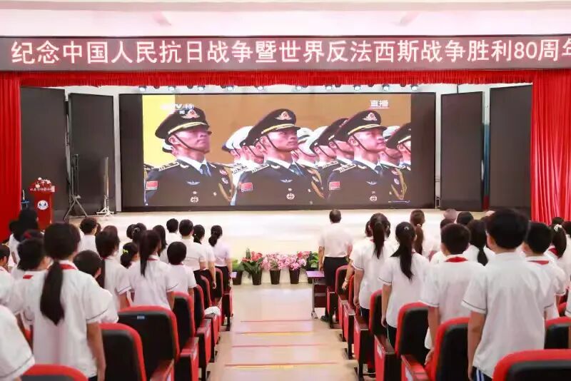 在中共中央总书记、国家主席、中央军委主席习近平的重要讲话中,我们回望80年前,无数先烈以热血铸就胜利丰碑;80年后,我们更懂和平的珍贵与家国的重量。此次集中观看阅兵式直播,是一场跨越时空的精神对话——让师生们在庄严的仪式中,触摸历史的温度,汲取奋进的力量,让爱国主义的种子在心底悄然扎根、生长。