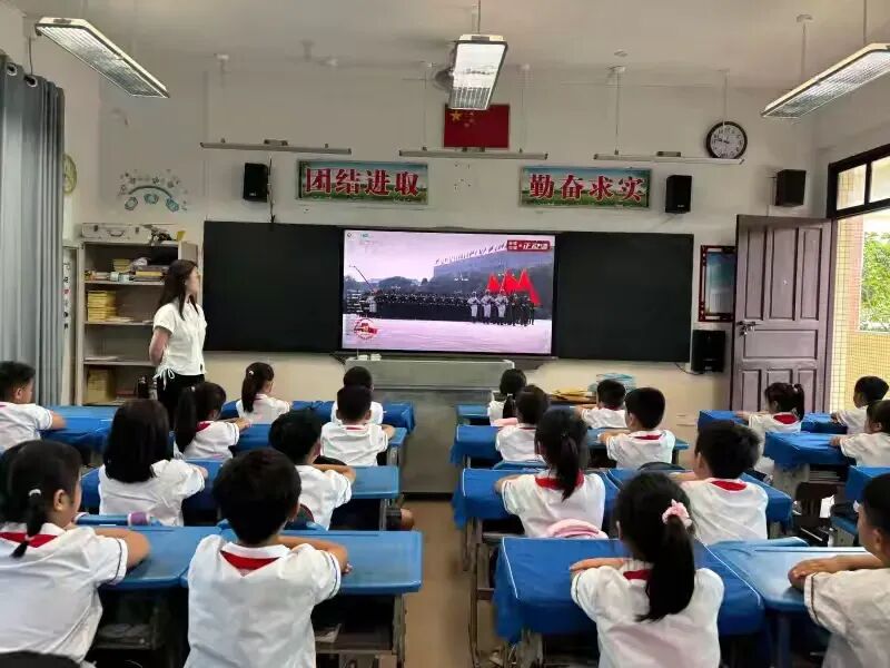为纪念中国人民抗日战争暨世界反法西斯战争胜利80周年,深切缅怀革命先烈,弘扬爱国主义精神,增强师生的民族自豪感与责任感,2025年9月3日上午9:00,文昌市树芳小学组织全校师生开展“铭记抗战史,共筑爱国情”阅兵式直播观看活动,让红色精神在校园中传递。