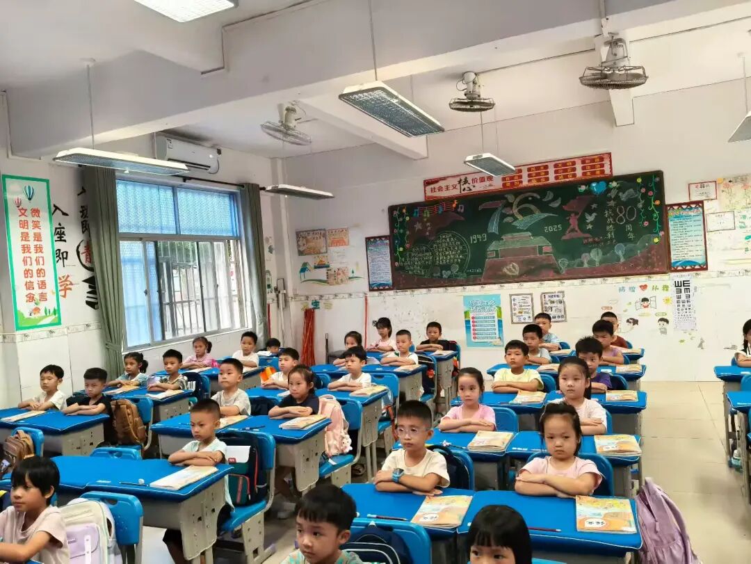 上课铃响前,教室里已经坐满了安静候课的小同学。他们将课本和文具整齐摆放在桌角,双手轻轻放在桌子上,小眼睛望着讲台,等待老师到来。挺直的小身板里,藏着对新知识的期待。