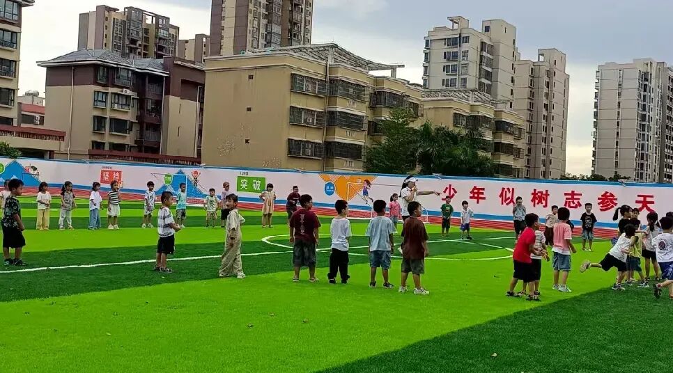 队列训练后是轻松的游戏环节。孩子们分成小组参与集体游戏,在阳光下奔跑、欢笑,尽情释放活力。他们学着互相配合、遵守规则,操场上回荡的清脆笑声,像一串串欢快的风铃,装点着童年的朝气。