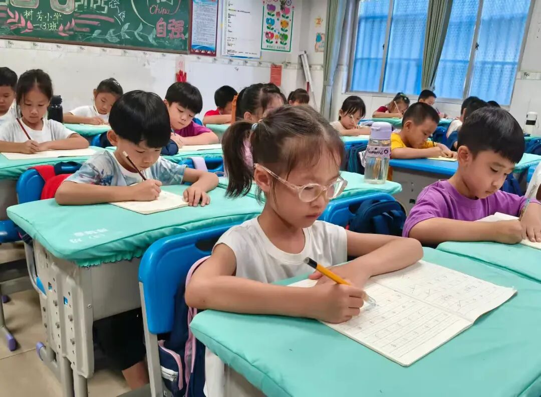语文课上,小同学们低头练习写字。他们握着铅笔,一笔一划地在田字格里描摹,小脸上满是专注。课本和练习本上,歪歪扭扭的字迹里,藏着努力写工整的认真。