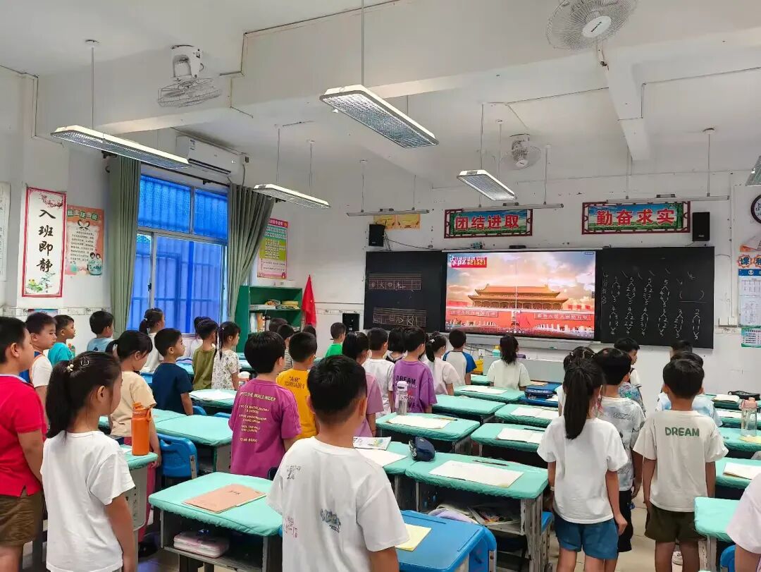 课前教室里响起国歌的旋律,小同学们齐刷刷地起立,跟着音乐大声歌唱,稚嫩的歌声里字字透着对国旗的尊重和作为小学生的自豪。