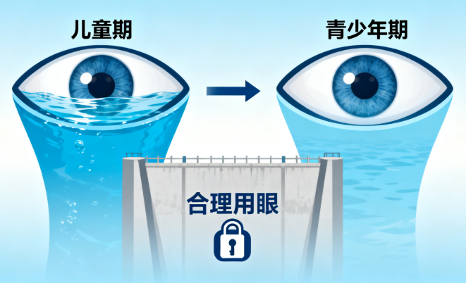 远视储备量就像一个水库,当水库里的“水”提前消耗完毕,儿童就会容易产生近视风险。