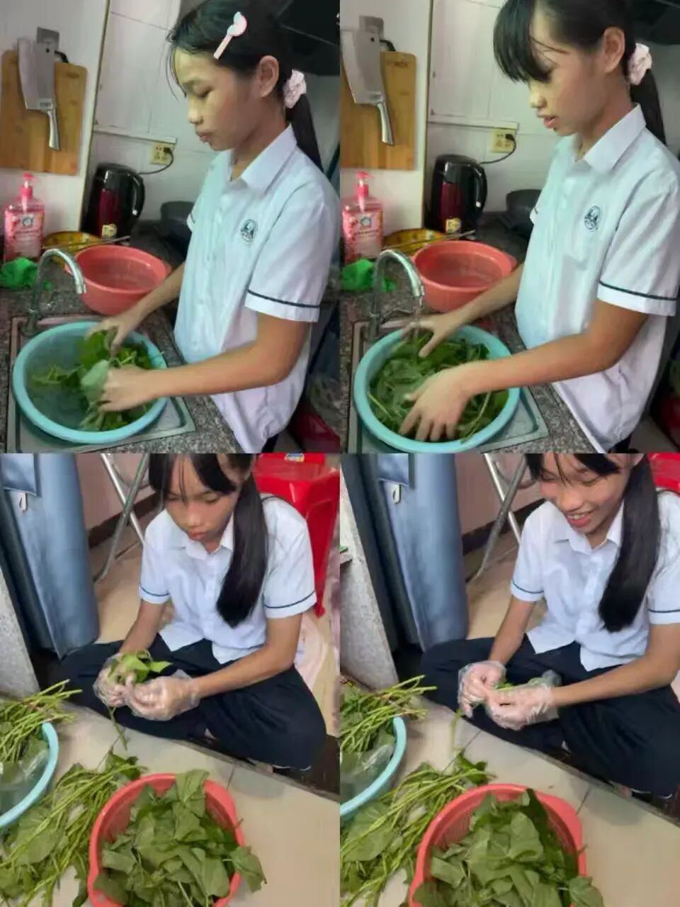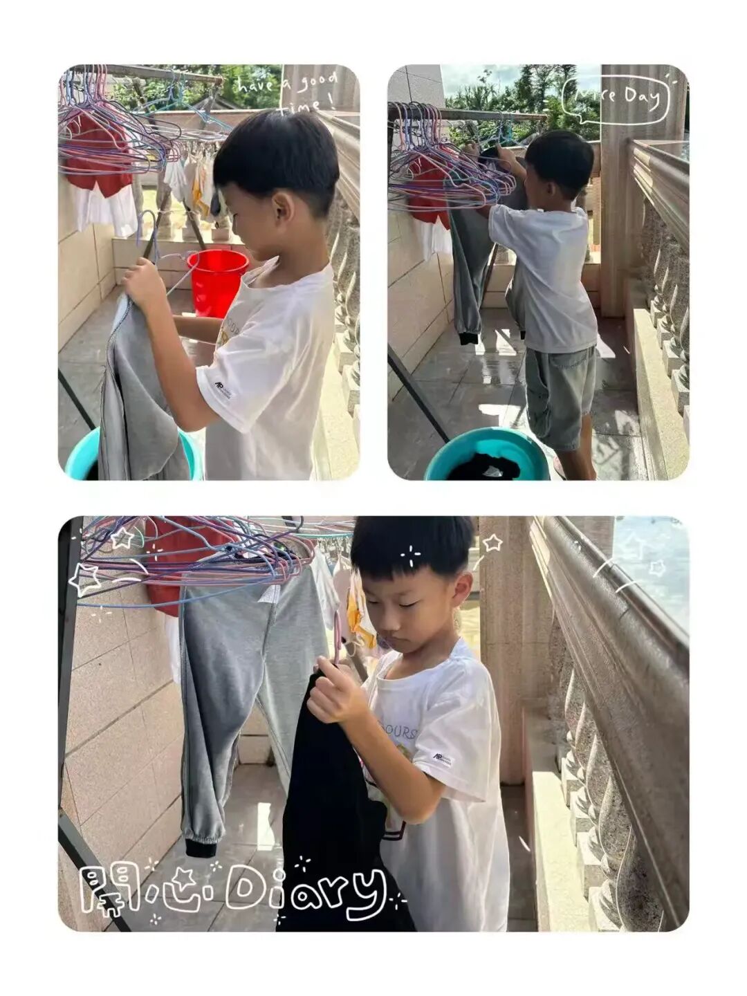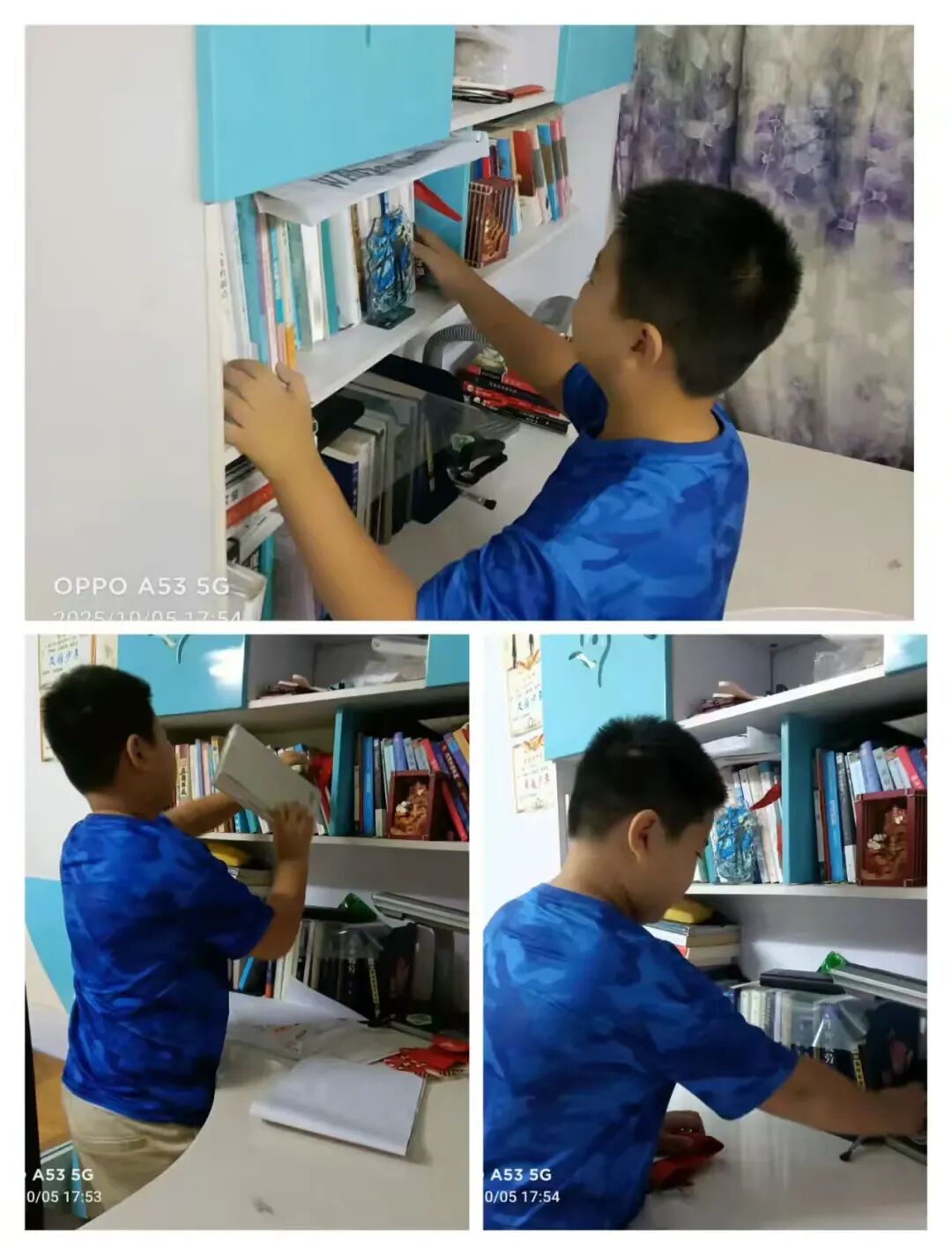 五年级的大孩子们在这个月挑战了洗菜、洗鞋子、整理自己的房间。洗菜时,他们认真去除菜叶上的泥沙,为家人的饮食健康把好第一关;洗鞋子时,将每一处污渍仔细清理,让鞋子恢复洁净;整理房间时,把衣物、杂物收纳得整洁有序,打造出舒适的居家小天地。这些劳动不仅提升了他们的生活自理能力,更让他们体会到为家庭付出的温暖。