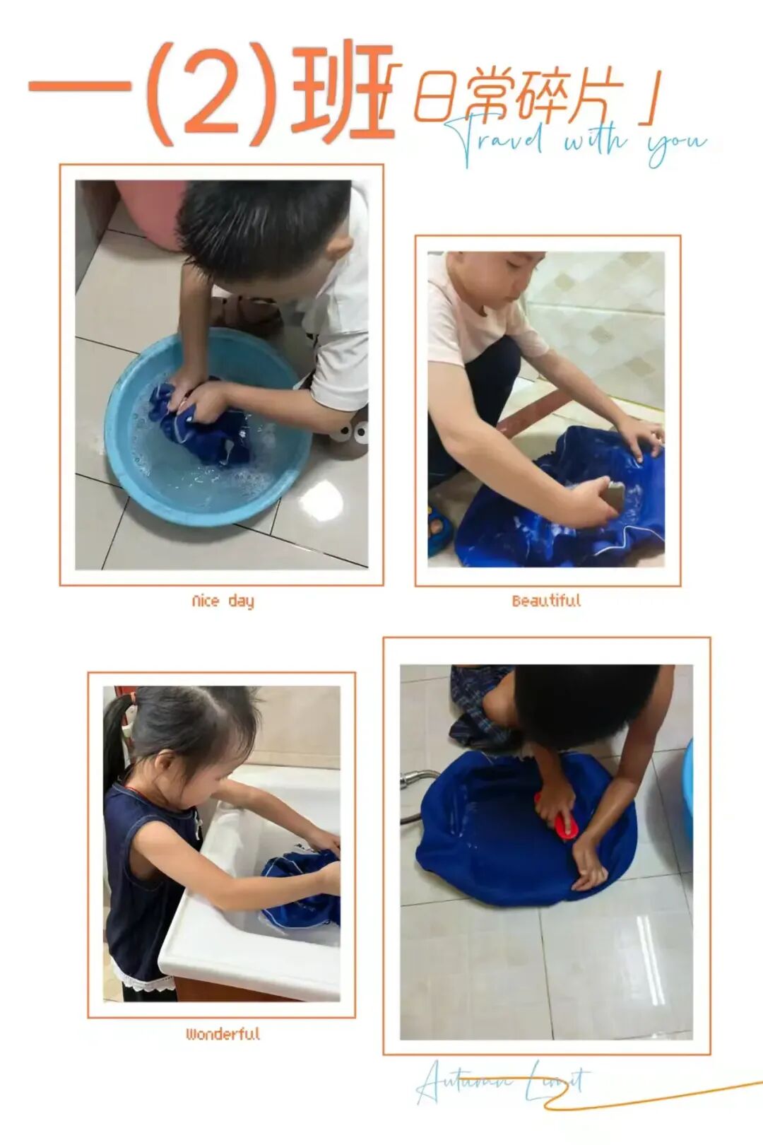 一年级的小萌娃们在这个月的周末里,解锁了洗桌布、整理书包、收拾书桌三项劳动技能。看着他们认真搓洗桌布的小模样,把书包里的文具、书本分类整理得整整齐齐,再将书桌收拾得干干净净,那股子专注劲儿,彰显着劳动启蒙的满满收获。这些看似简单的劳动,悄悄培养了他们整理归纳的好习惯,让“自己的事情自己做”的意识在心底生根发芽。