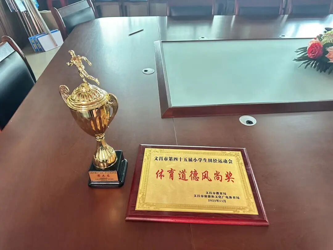 在近日圆满落幕的文昌市第四十五届中小学田径运动会上,我校运动健儿们发扬了顽强拼搏、奋勇争先的体育精神,赛出了水平,赛出了风格,最终凭借出色的表现和优异的成绩,斩获多项佳绩!为学校赢得了团体总分第五名与“体育道德风尚奖”的双重荣誉!