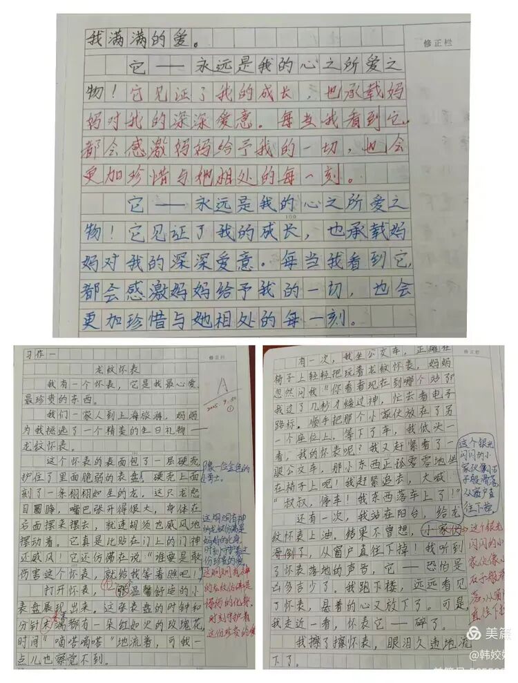 1.习作批改及时,教师注重内容点评与总结性评语,既标注语病,也针对选材、结构给出具体修改建议,还附有“加油”印章;部分学生习作语言生动、善用修辞且情感真挚,展现出良好表达潜力,少数学生存在语句不通、标点使用错误等基础问题。