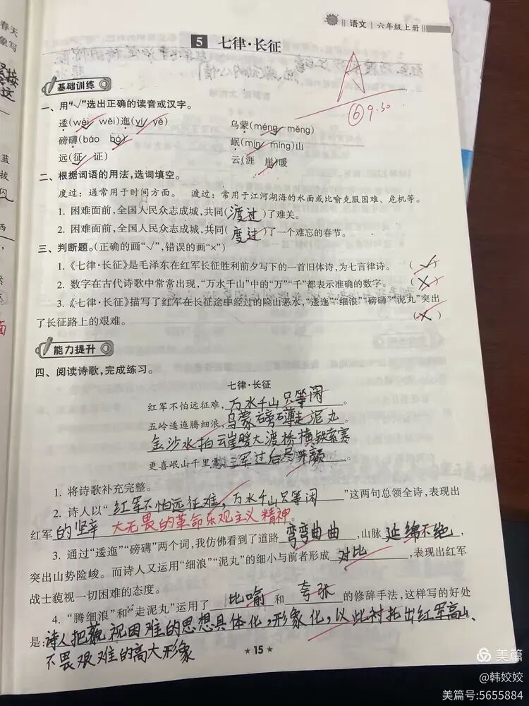 3.指导价值:作业本上的清晰字迹与细致批注,直观体现了教师对学生学习过程的持续关注,也展现了对学生学习的精准指导。