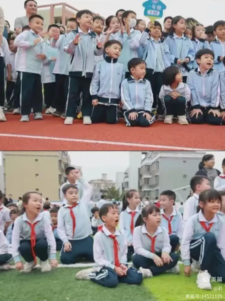 一年级各班在班主任带领下有序入场并集中。主持人宣读比赛任务与流程。陈洪组长赛前宣布规则与注意事项。赛道与器材已布置到位,呼啦圈与终点标识清晰可见。