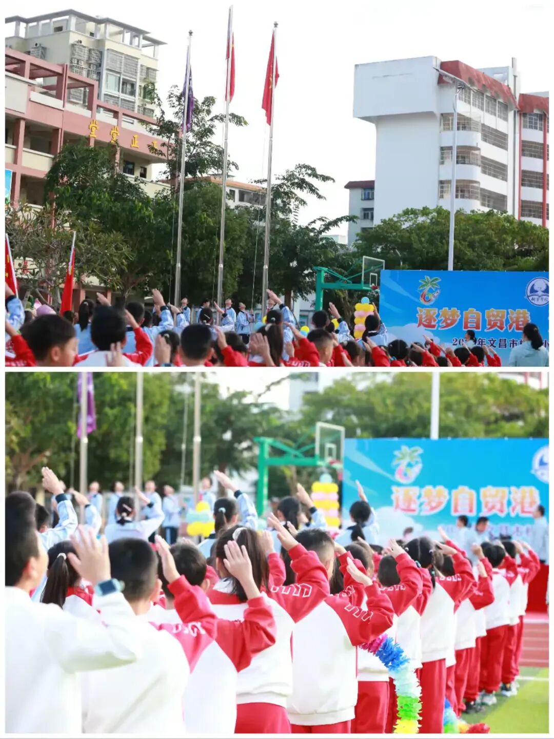 王宇校长郑重宣布:“2025年文昌市树芳小学体育节正式开幕!”话音刚落,全场掌声雷动,欢呼声、呐喊声交织在一起,将现场气氛推向高潮。