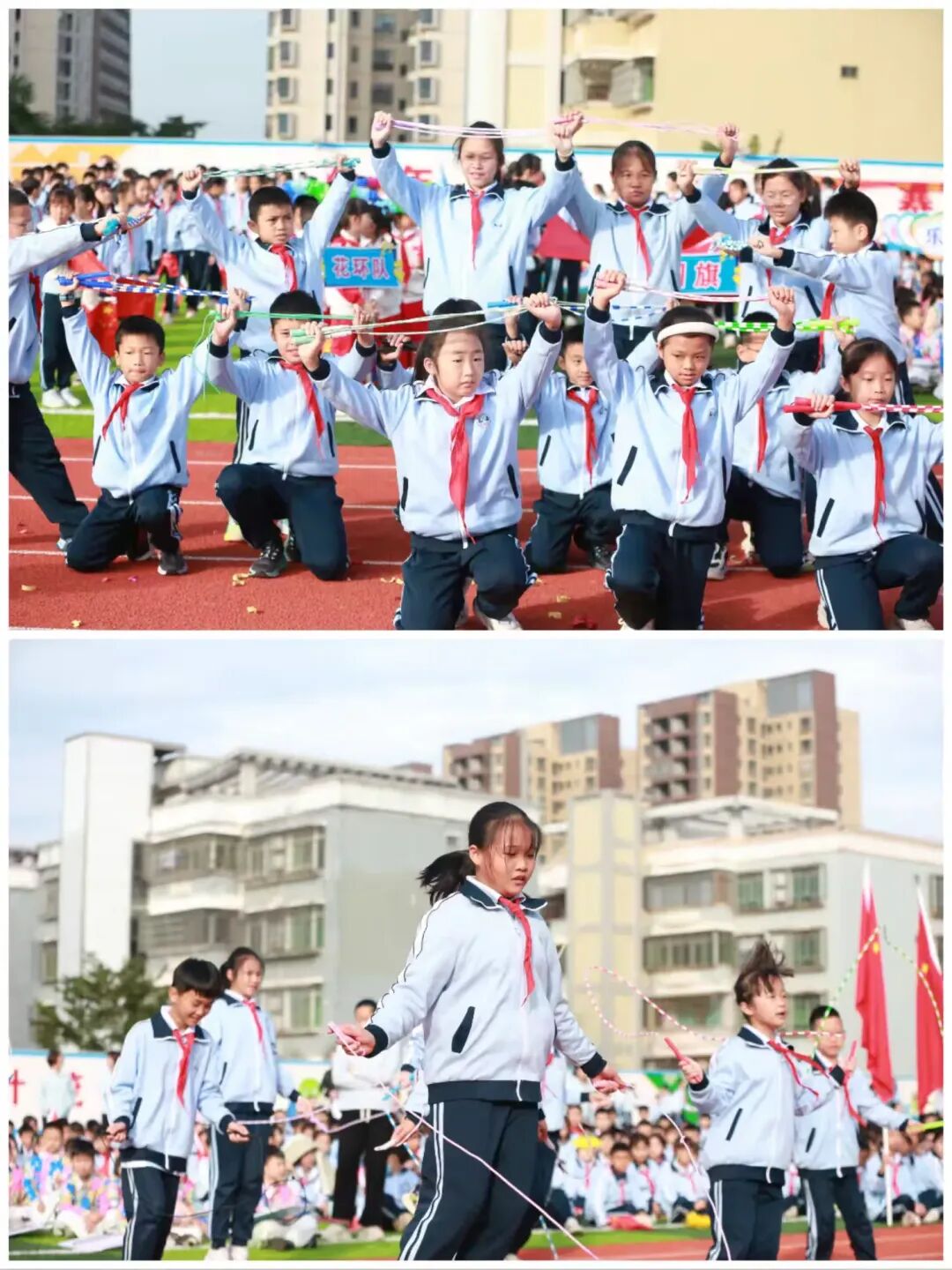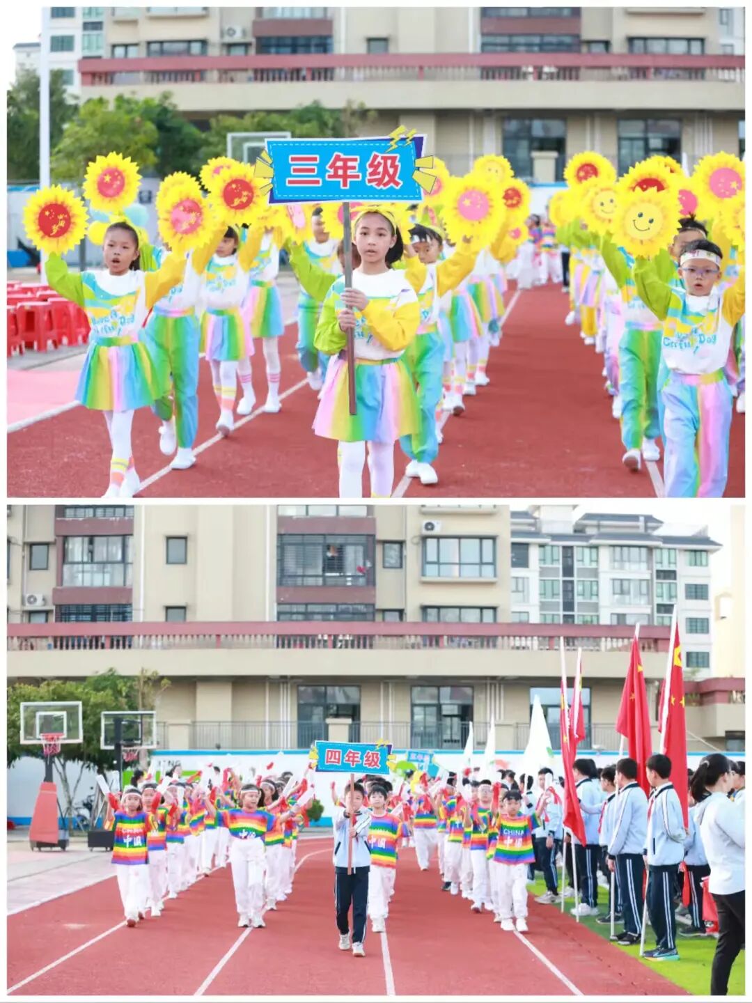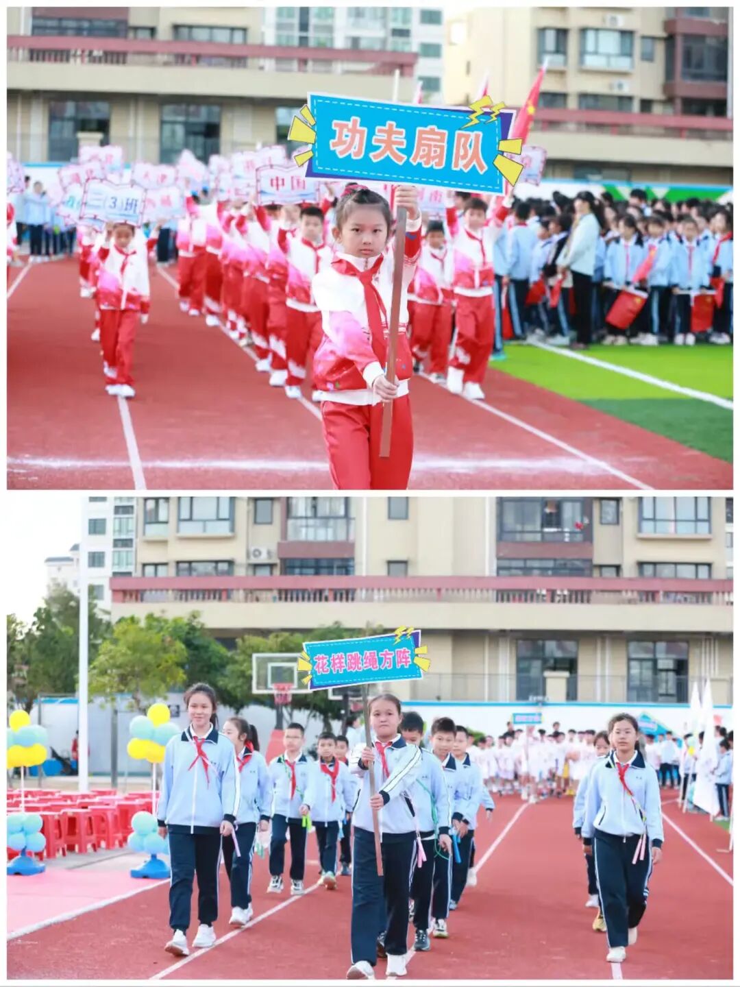 一年级至六年级的班级方阵也带来了各具特色的表演,每个方阵都用独特的方式展现着班级风采,赢得全场观众的阵阵掌声。