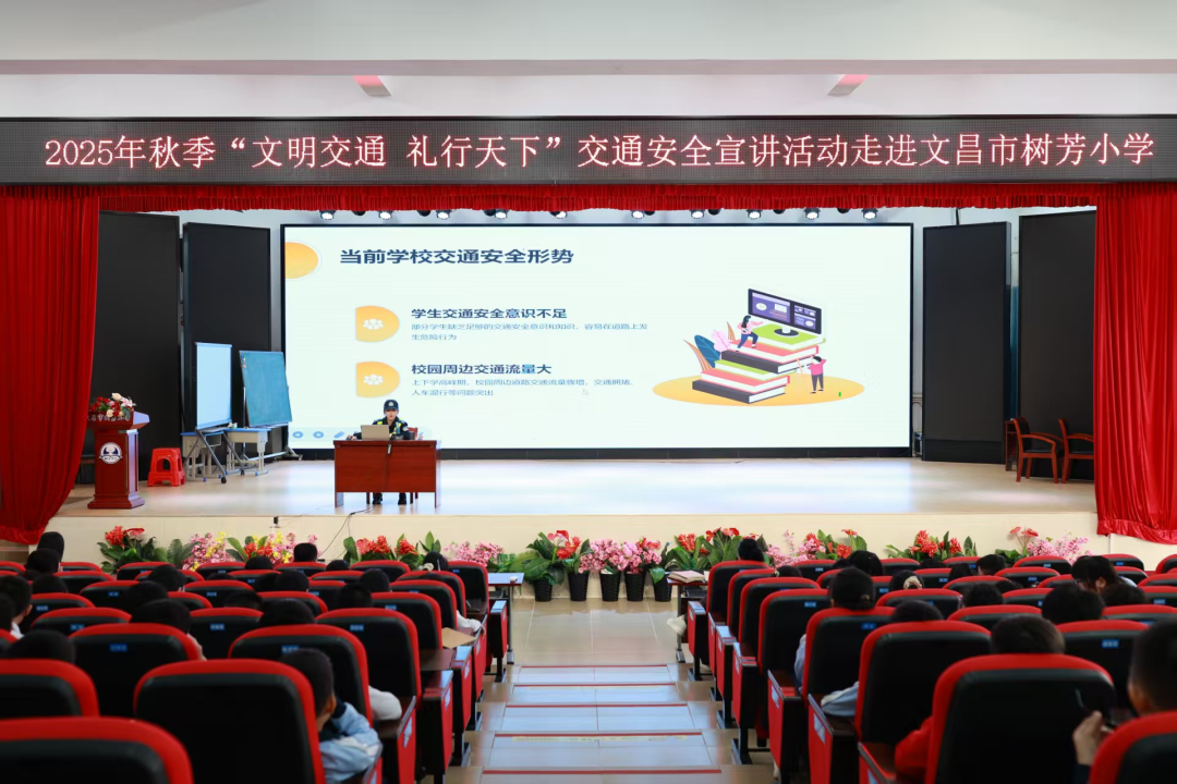 2025年12月2日是第十四个122全国交通安全日,为增强师生交通安全意识,有效预防交通安全事故的发生,12月3日上午我校组织六年级学生在茂行厅开展“文明交通 礼行天下”交通安全宣讲活动,来自文昌市公安局交通管理大队的杨惠虹宣讲员,围绕“全国交通安全日”主题,为师生带来了一场实用的交通安全知识课。