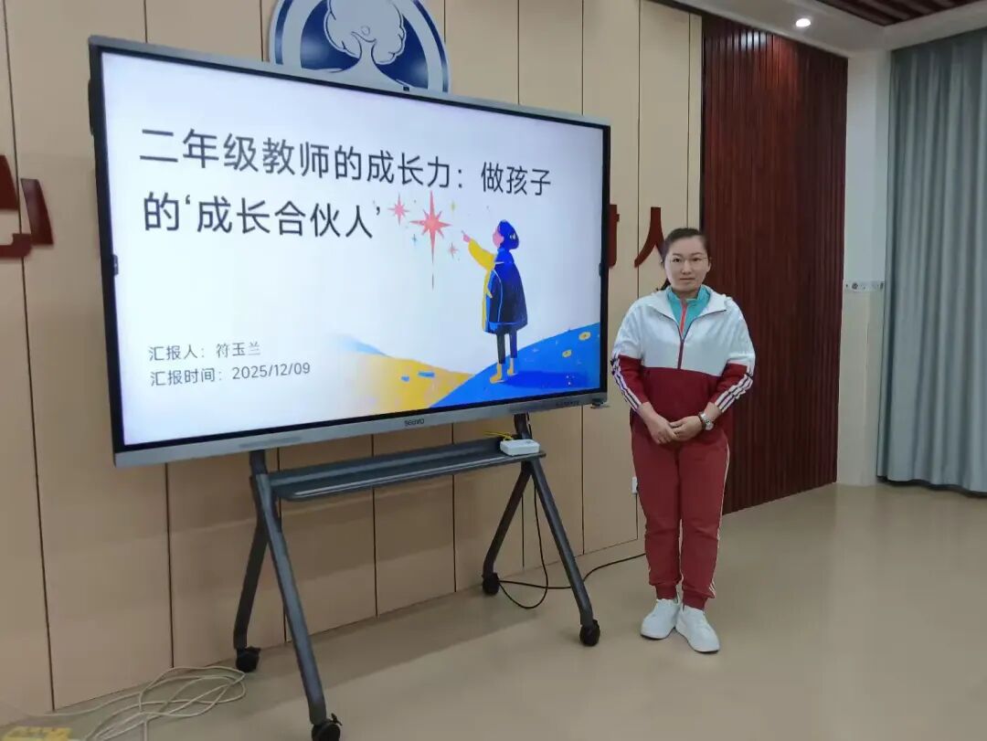 符玉兰老师围绕教学困惑与成长开展读书分享。她坦言曾因课堂上的细碎事务和师生拉扯陷入焦虑,而书籍为她提供了破局钥匙——学会看见学生差异并落实分层支持。她还强调要共情学生雷阵雨般的情绪,转变教学姿态,从单向提要求转为耐心听懂诉求,最终以“成长合伙人”的身份,陪学生开启慢节奏的成长旅行,实现了教学与育人的双向进阶。