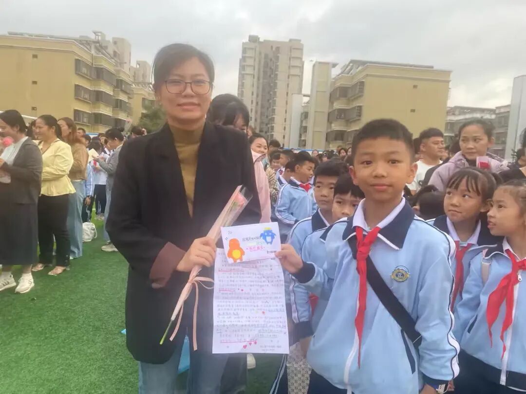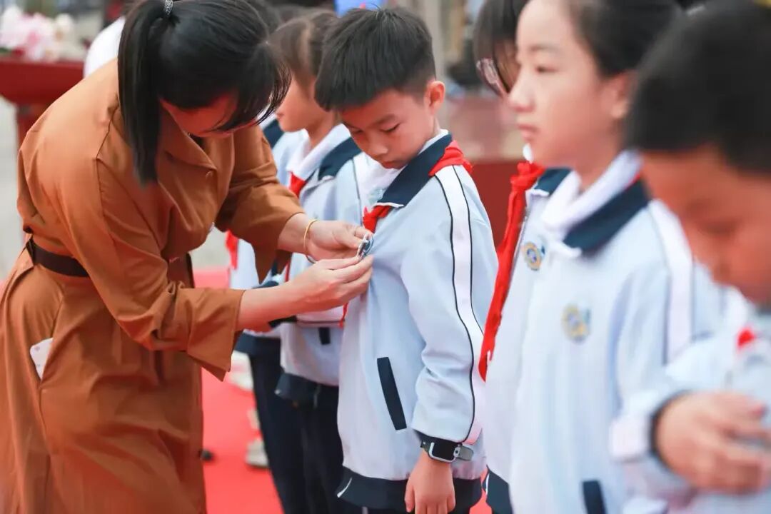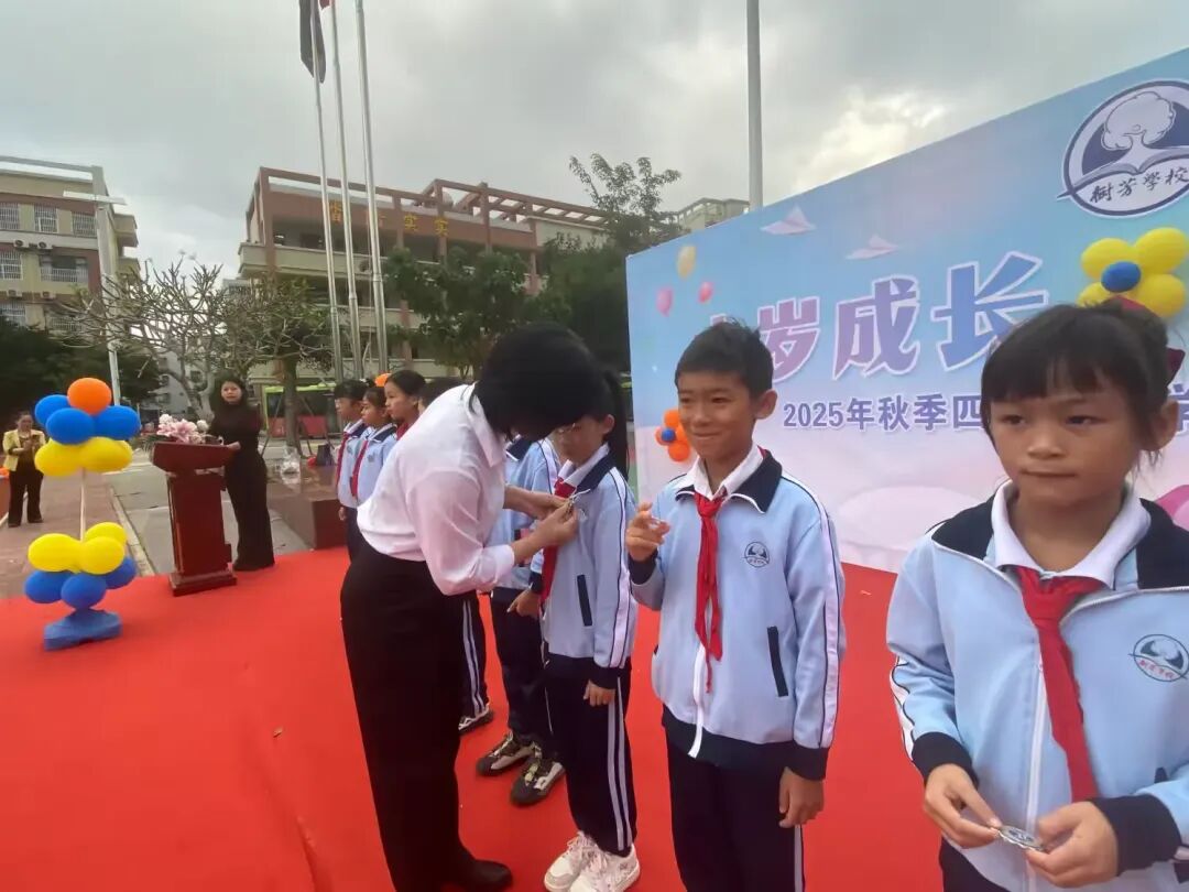 在全场师生和家长的共同见证下,少先队大队部辅导员郑重地将“成长徽章”授予学生代表。一枚枚闪亮的徽章,不仅承载着成长的印记,更寄托着学校对孩子们未来担当的深切嘱托。