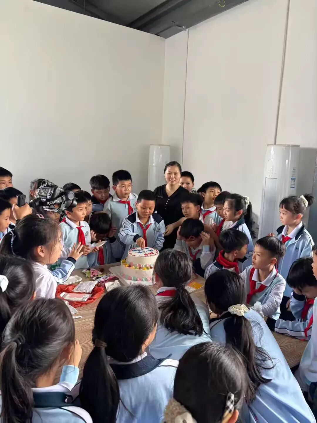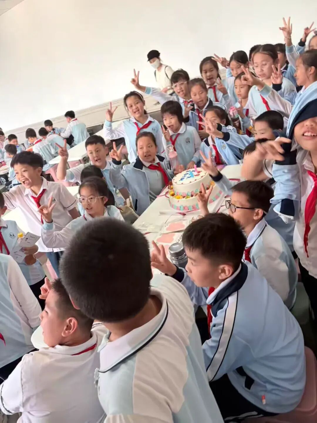 学生们围坐桌旁,目光聚焦在装饰精美的生日蛋糕上,脸上洋溢着幸福的笑容。这一刻,友情与师生情在此刻交融,成为十岁最动人的记忆。