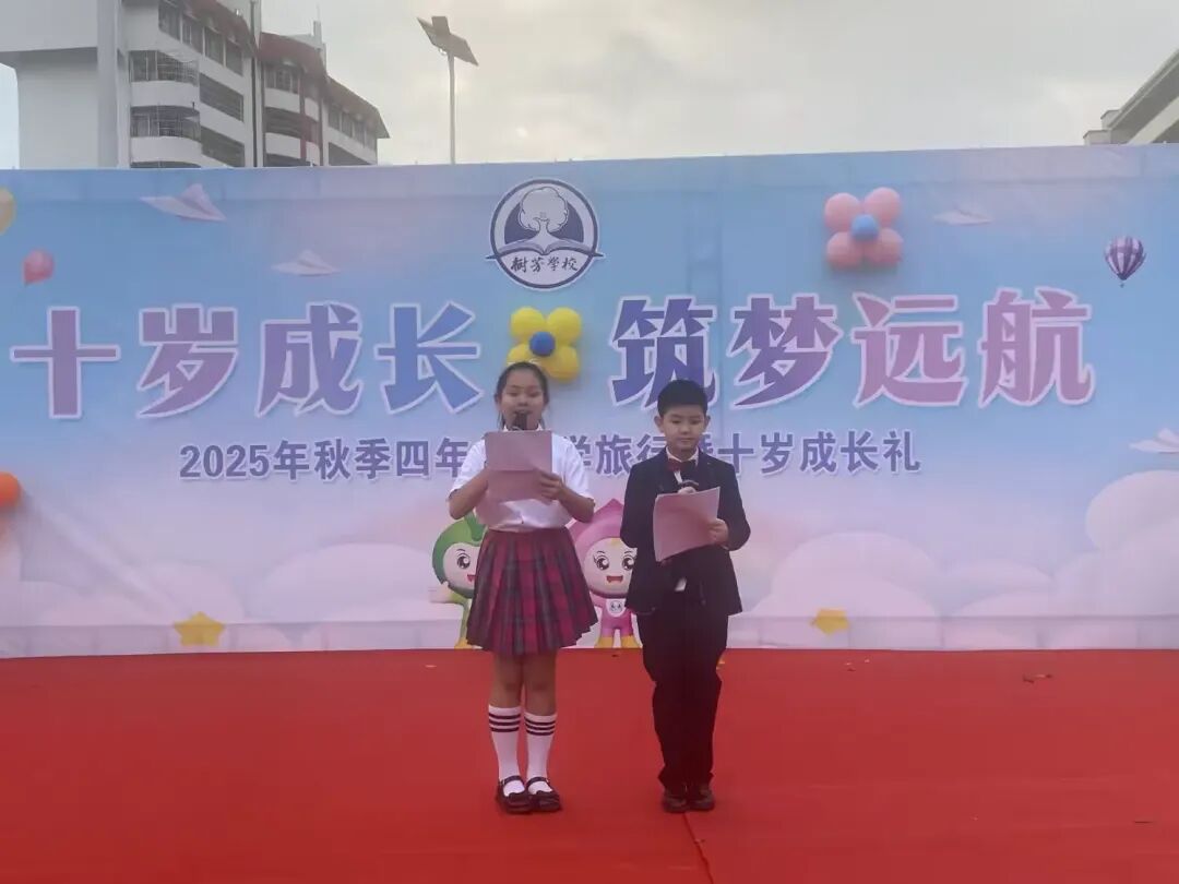 十岁,是人生旅途中的第一个重要里程碑,象征着从童年迈向少年的关键转折。为弘扬中华优秀传统文化,落实“八礼四仪”教育精神,引导学生学会知恩、感恩、报恩,增强责任意识与集体归属感,文昌市树芳小学于2025年12月5日上午在校园操场隆重举行“十岁成长 筑梦远航”年级研学旅行暨十岁成长礼活动。