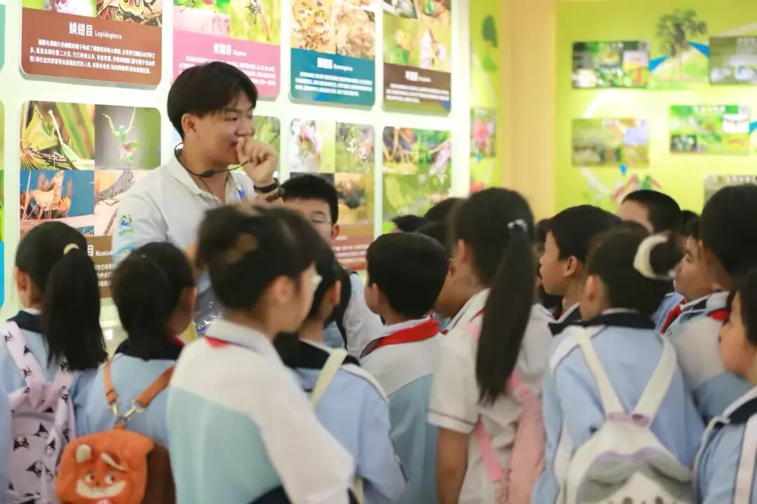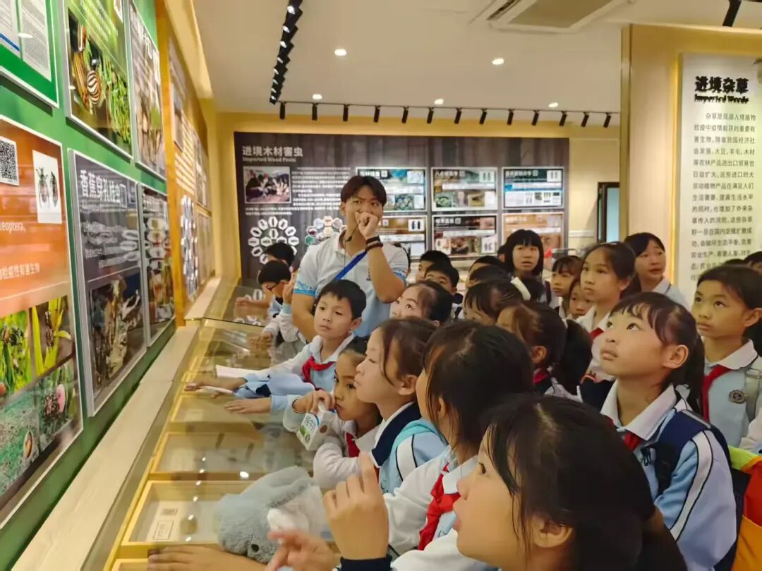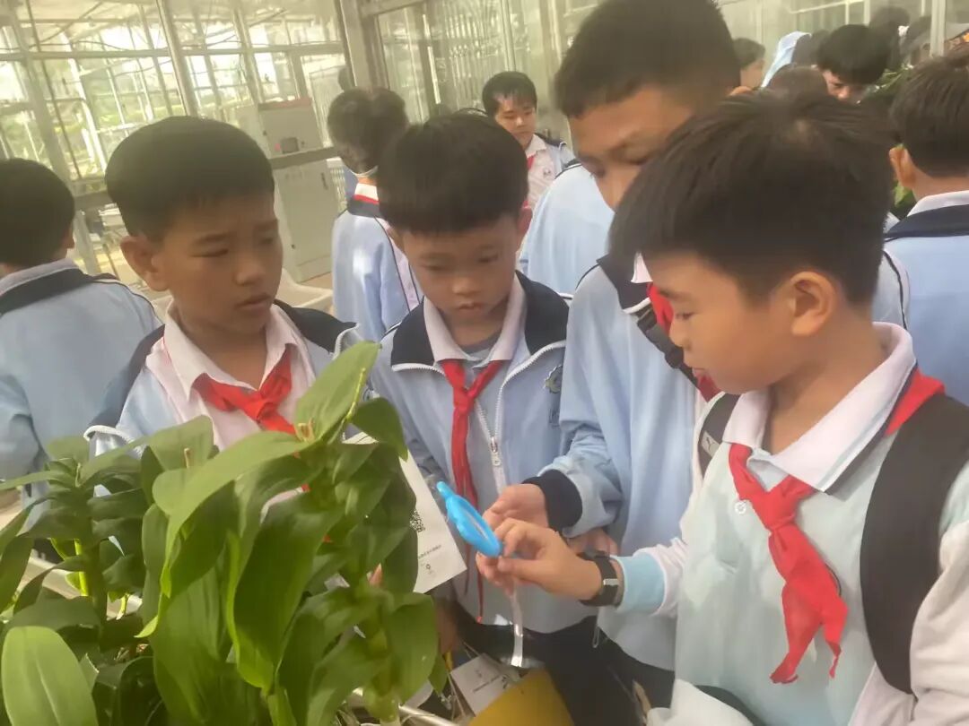 学生们围在绿意盎然的植物旁,专注聆听老师讲解;有的手持工具细心观察叶片脉络,有的驻足展板前认真记录。在真实的情境中探索知识,学习变得生动而有趣。