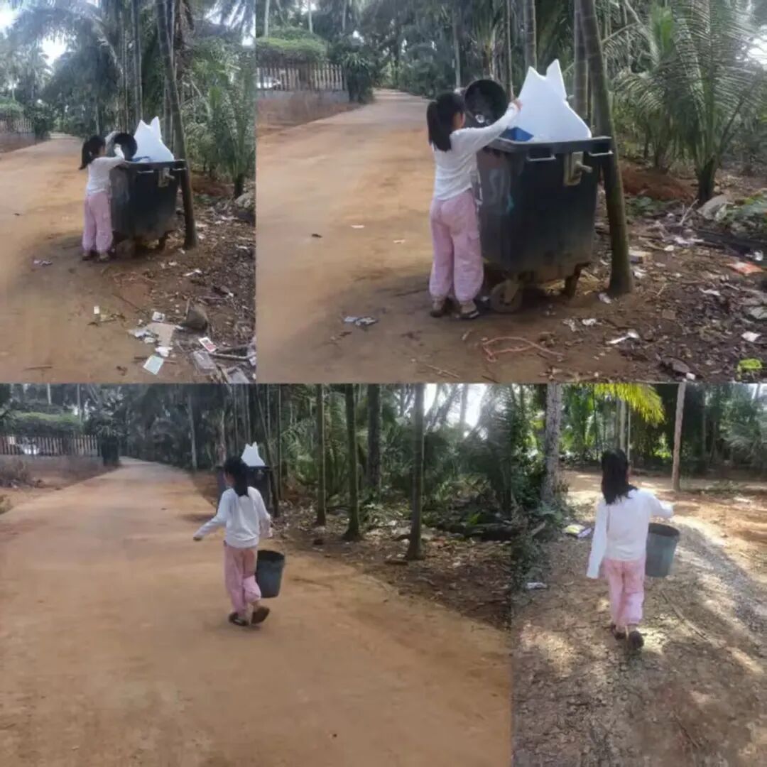 三年级的“环保小卫士”们拎起垃圾袋,稳稳将垃圾送到指定地点,用行动守护家园的整洁。
