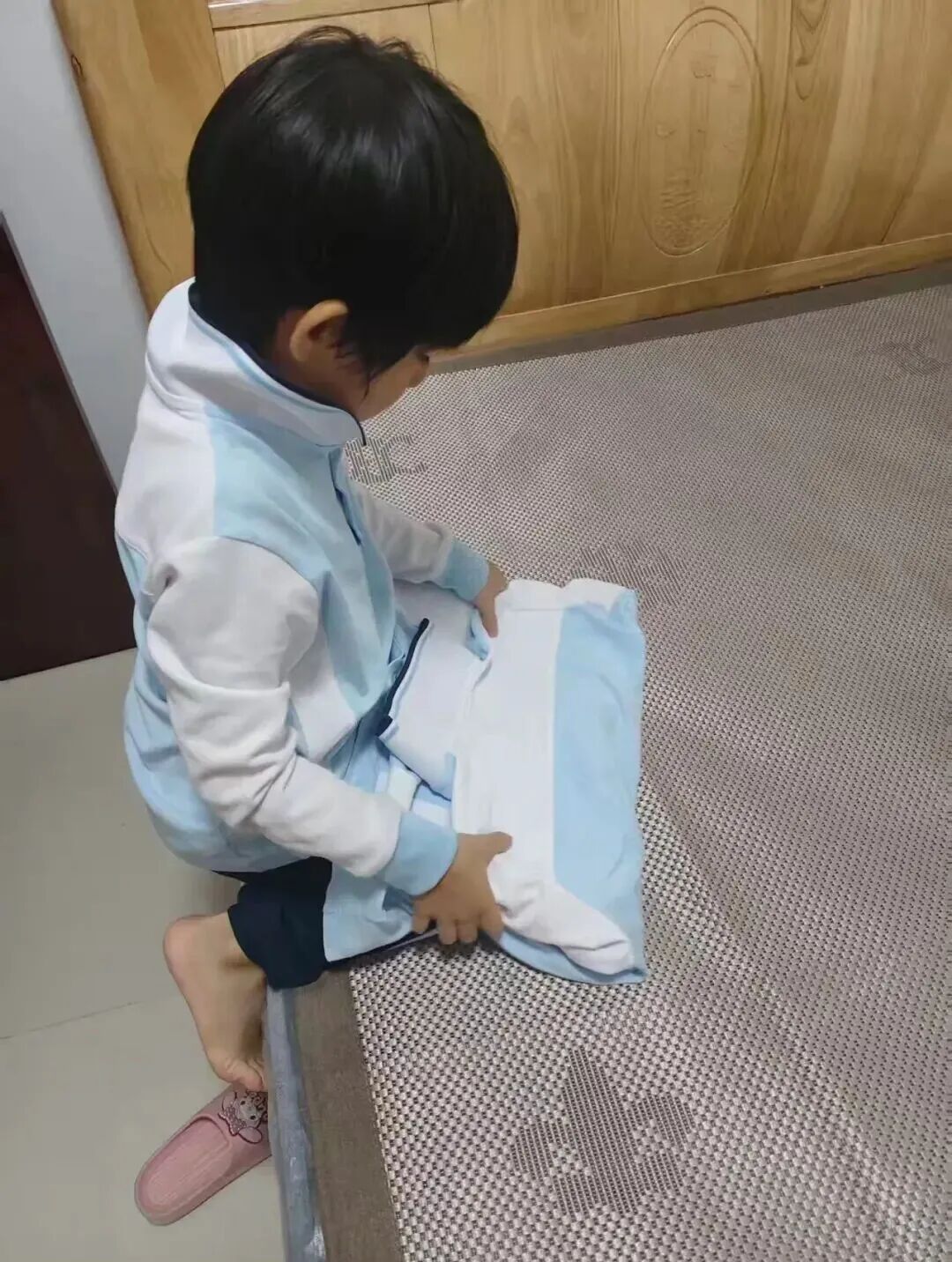 一年级的小朋友们化身“衣服整理师”,将衣服分门别类归置整齐,衣柜里,藏着他们对整洁的理解。