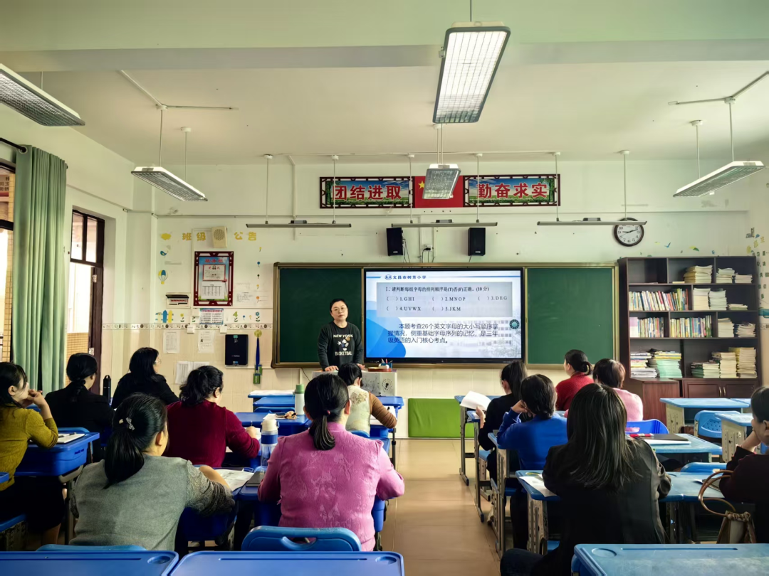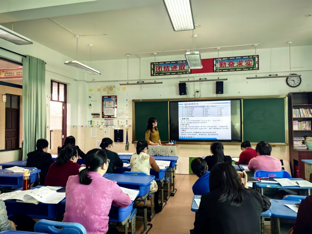 三年级备课组长符小燕老师针对试卷10道试题,逐一解读考查内容与答题技巧,精准定位教学薄弱点,并提出实施分层教学、强化细节教学、优化反馈机制三项整改措施。