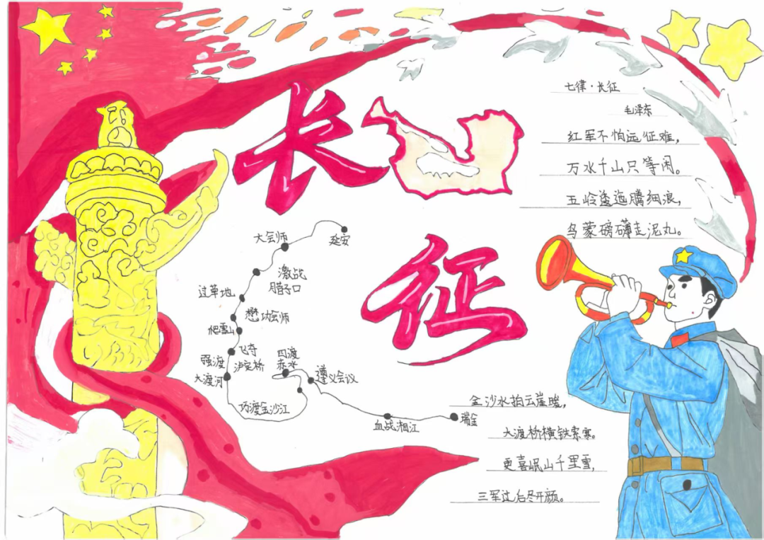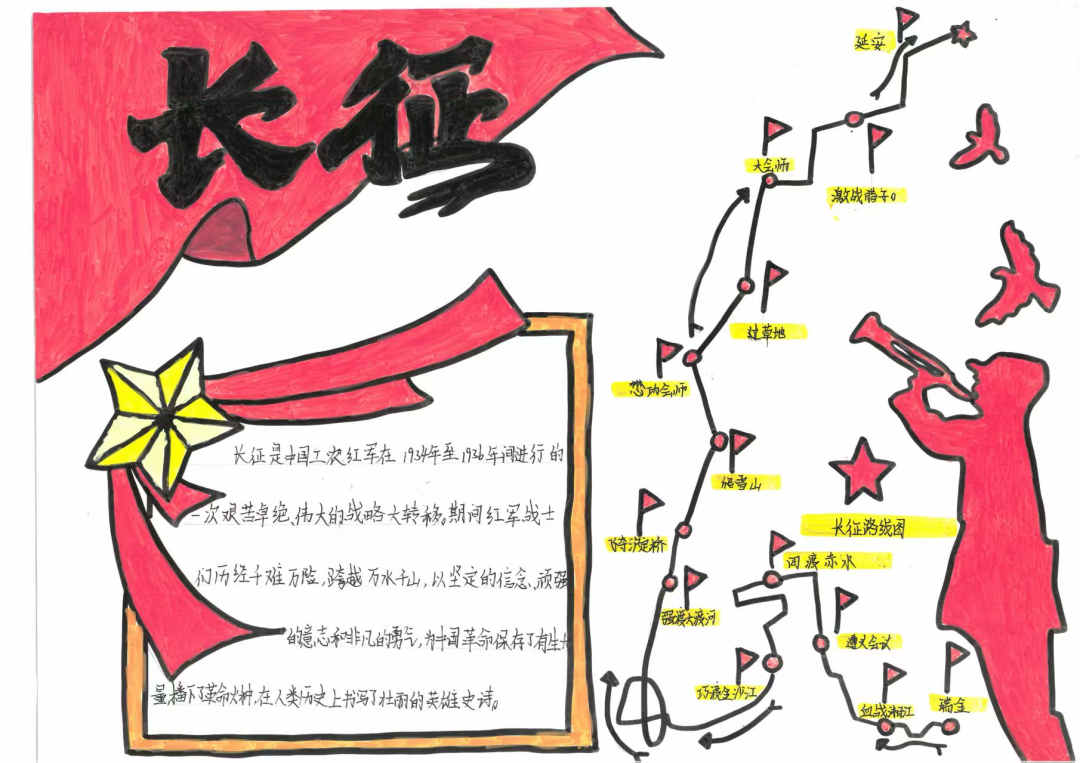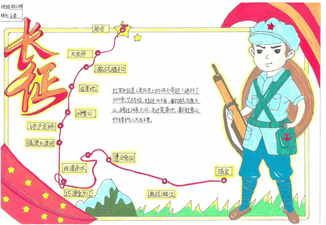 红色润童心,精神永传承,追寻红色足迹,铭记长征精神。以“长征故事”为主题创作手抄报,内容详实、版面美观,字字句句饱含敬意,让红色基因代代相传,让信仰之花在心中绽放。