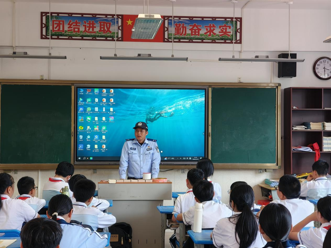 课堂上,法治宣传员结合小学生的认知特点,用生动的案例和通俗易懂的语言,围绕110报警电话规范使用、防范校园欺凌、道路交通安全、预防溺水、网络安全等内容展开讲解。