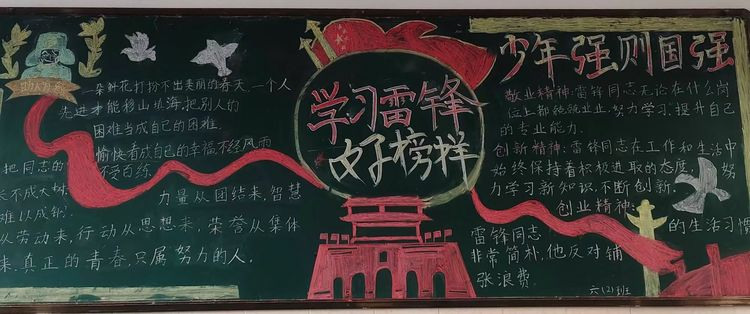 3月9日至16日,各班围绕活动主题制作雷锋月专题黑板报,融入雷锋事迹、名言警句、身边好人好事等内容,打造班级德育宣传阵地,切实发挥黑板报的育人作用。