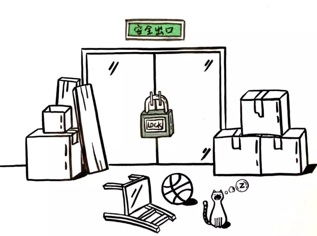4.安全出口锁闭,疏散通道堆放物品
